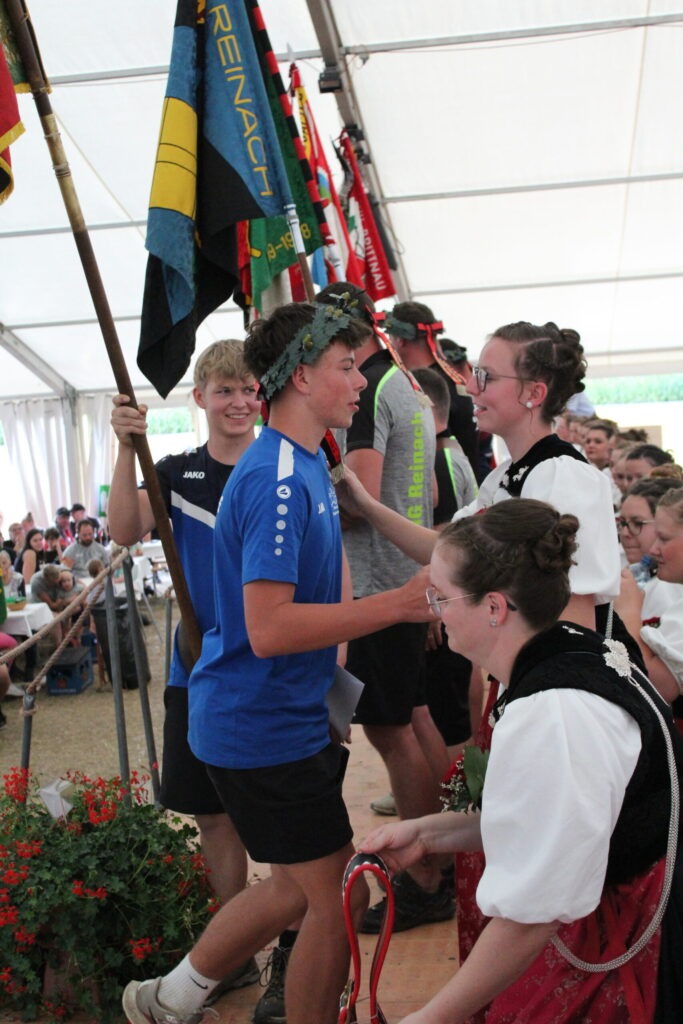 Bei den Einzelschlägern baute Samuel Krebs Halten seinen Vorsprung aus und sicherte sich mit 129 Punkten den Festsieg. Nur der letzte Streich, eine 17, war unter der 20er Marke. Ebenfalls nur einen Streich unter 20 musste sich Florian Ruch Diessbach bei Büren schreiben lassen. Mit 125 Punkten durfte er sich über den 2. Rang freuen. Als Dritter schaffte es Lorenz Herbling Kappelen-Saurenhorn mit 117 Punkten aufs Podest. Den Preis als bester Nachwuchshornusser durfte Ivan Schärer Mättenwil-Brittnau entgegennehmen. Mit 94 Punkten durfte er zusätzlich den Kranz in Empfang nehmen. Für den Kranz wurden mindestens 92 Punkte und die Medaille deren 80 Punkte benötigt.
