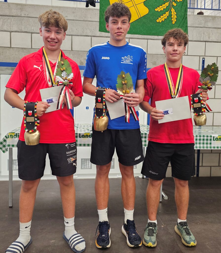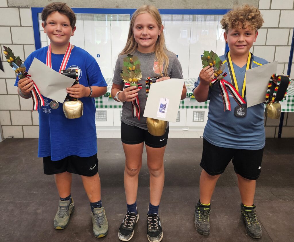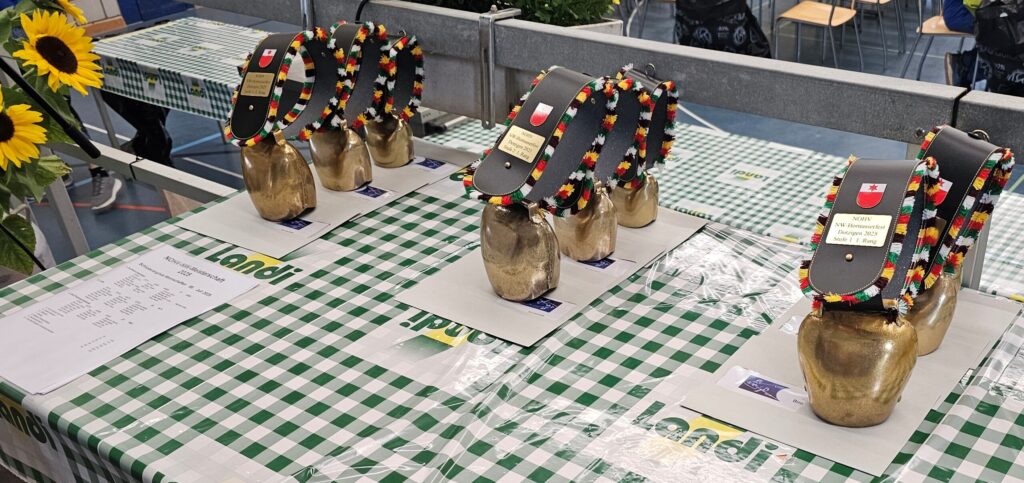 Da vor der Rangverkündigung des Verbandsfestes auch noch diejenige der Meisterschaft durchgeführt wurde, sah man in Dotzigen nach deren Ende viele strahlende Gesichter und reich geschmückte Nachwuchshornusser:innen mit zum Teil mehreren Auszeichnungen.