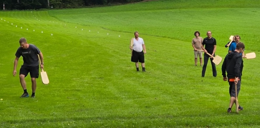 Einmal mehr boten die Hornusser Burgdorf einer interessierten Gruppe ein Schnupperhornussen an. Diesmal besuchten 13 Angehörige des STV Laupersdorf die Spielanlage in Rohrmoos, wobei sie mit dem Fahrrad angereist sind.