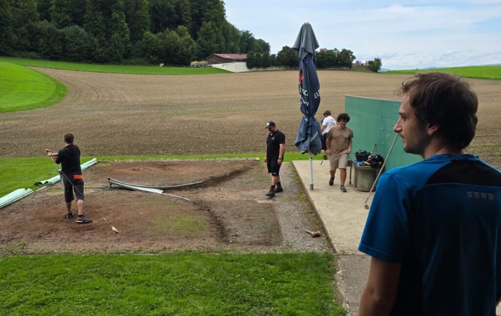 Es folgten erste Schlagversuche vom Bock, wo die beiden Burdlefer Betreuer unermüdlich Hornusse setzten. Ab und zu wurde der Hornuss auch getroffen und flog Richtung Ries. Diese Erfolge wurden von den Turnern auf der Veranda jeweils mit Bravo-Rufen und Klatschen gewürdigt.