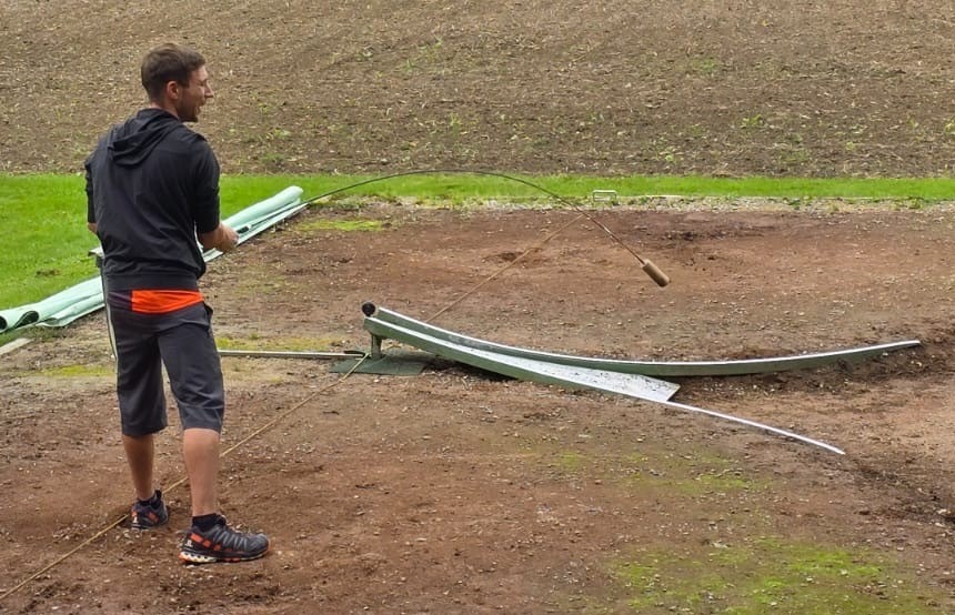 Nach einer kurzen Einführung in die Spielanlage, die Regeln und einer Materialkunde, gings dann zur Sache. Thomas Jordi und Pascal Stettler zeigten, wie die Stecken und auch die Schindeln zu handhaben sind. Hier merkten die Gäste ein erstes Mal, dass das Führen des Schlagwerkzeugs bedeutend schwieriger ist, als es scheint.